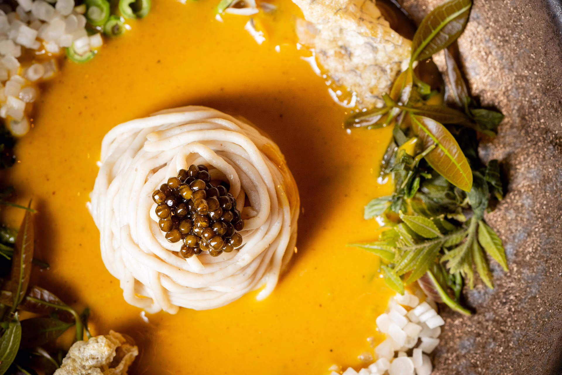 Over a nine-course tasting menu, award-winning chef Chalermwut Srivorakul has injected authentic Thai flavours into plants and animals that disrupt local ecosystems, such as water mimosa, black chin tilapia and golden apple snails. The menu revolves around what produce is available during the season.