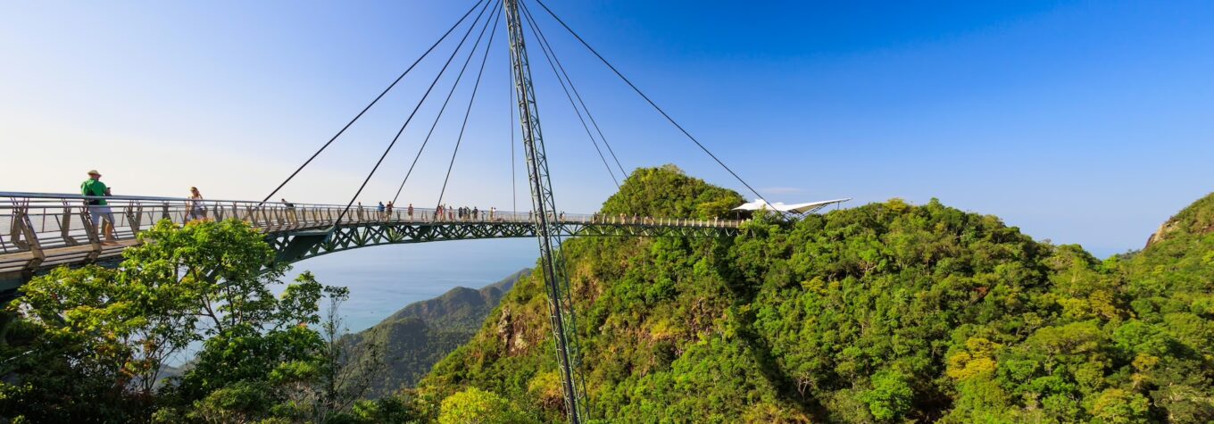 Soar above limestone cliffs and ancient rainforests aboard SkyCab, one of the world’s steepest cable cars, up to the summit of Gunung Machincang. Then step onto the spectacular Sky Bridge, a curved marvel suspended 660m above sea level. Don’t miss the Eagle’s Nest Skywalk at the middle station for more Insta-worthy panoramas. Later, cool off at nearby Telaga Tujuh (Seven Wells Waterfall). panoramalangkawi.com