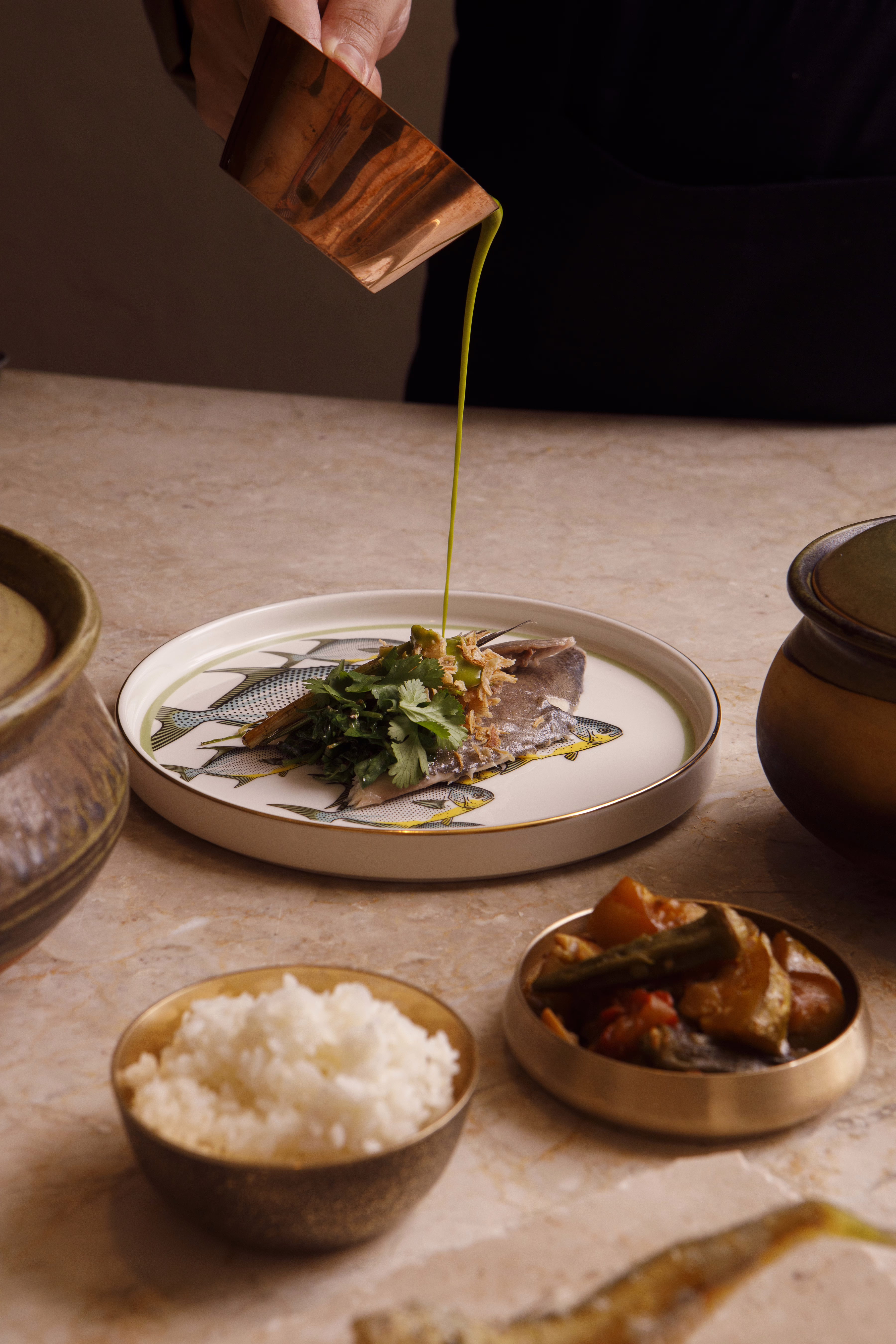The minimalist interiors incorporate indigenous materials like banana fibre and oyster shells, creating a space that’s warm, refined and rooted in place. With only eight seats at a communal counter and a private dining room for six, it is the perfect setting for a personal dining experience centred around seasonal ingredients, local and international flavours, and modern technique.